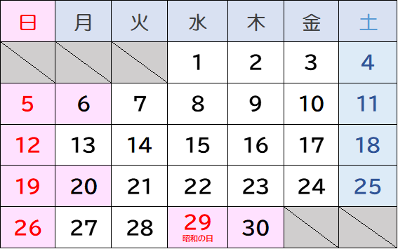 29日から5月6日までGW休暇を